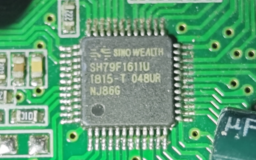 首先看看主控,主控型号是SH79F1611U,封装是LQFP48,这是sinowealth(中颖电子)推出的一颗集成ADC和PWM的增强型8051微控制器。