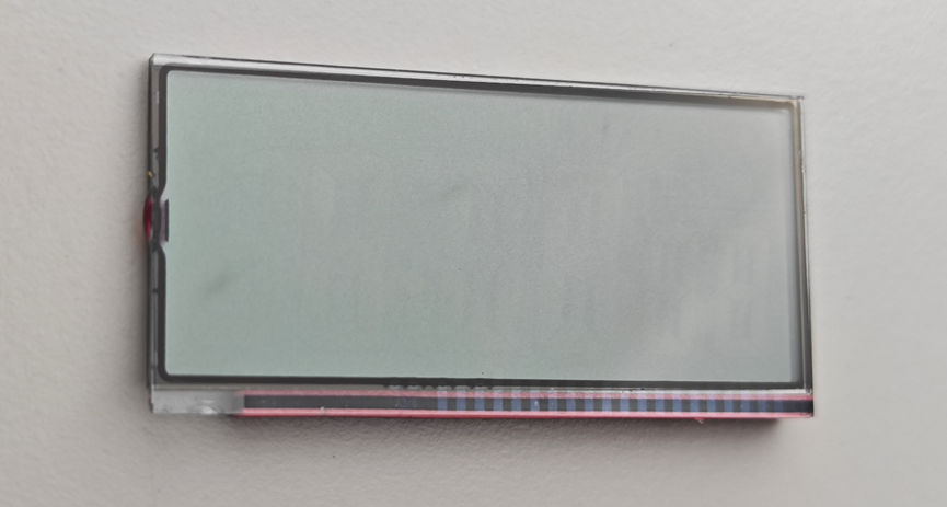 屏幕的正面是这样的,这应该就是段码屏,基本上每种产品里的这东西都是定制的。我咨询过我的屏幕供应商,这东西量大了价格贼便宜。以后有机会也试试。