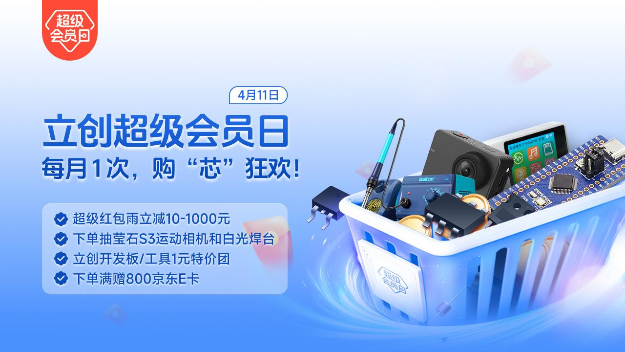 自今年立创会员日重磅升级为立创超级会员日,多人团受到了大家广泛的喜爱,参团人数不断创新高,每到超级会员日当天,呼朋唤友多人团的热闹场景随处可见~看到大家参与热情这么高,4月11日超级会员日多人团福利继续大放送,开发板、立创工业品等10款商品低至1元!