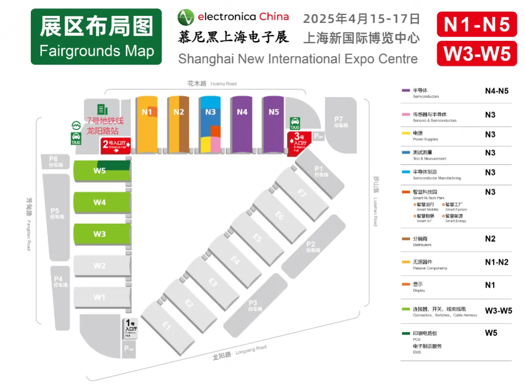 4月15-17日,2025慕尼黑上海电子展将在上海新国际博览中心W3-W5、N1-N5馆举办,展会展示面积达10万平,设立半导体、传感器、电源、测试测量、半导体智造、分销商、无源器件、显示、连接器、开关、线束线缆、印刷电路板、电子制造服务等展区。