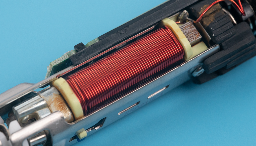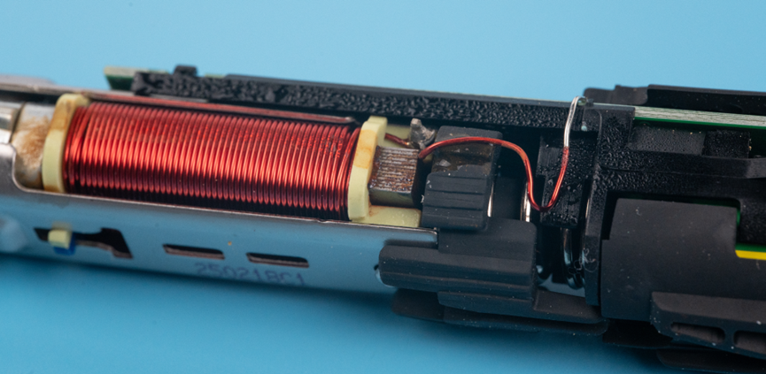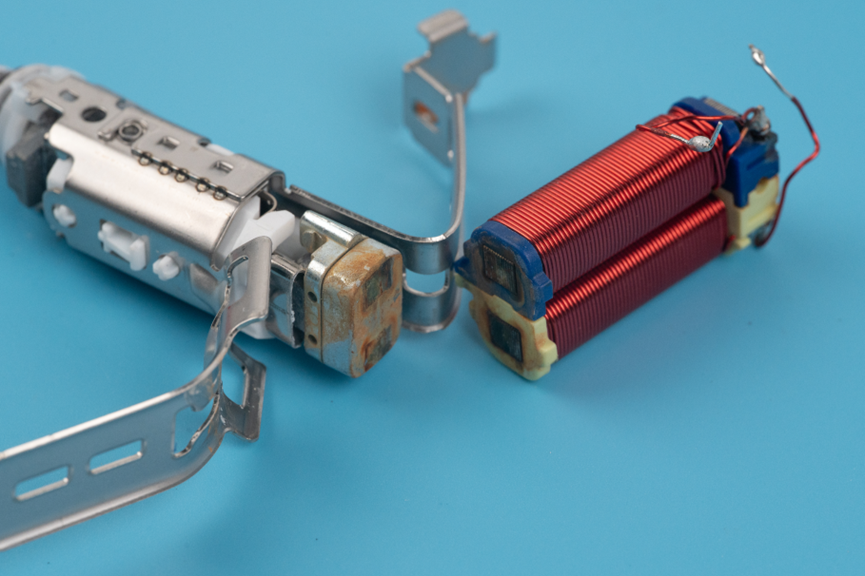 震动线圈内部磁芯有些许生锈,毕竟这部分是这个牙刷的软肋,遇到水必然是第一个生锈的。