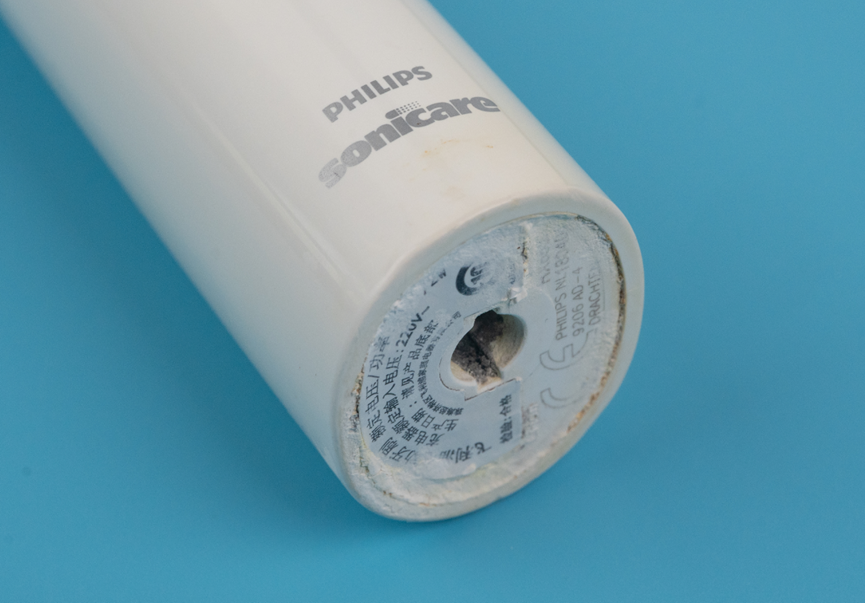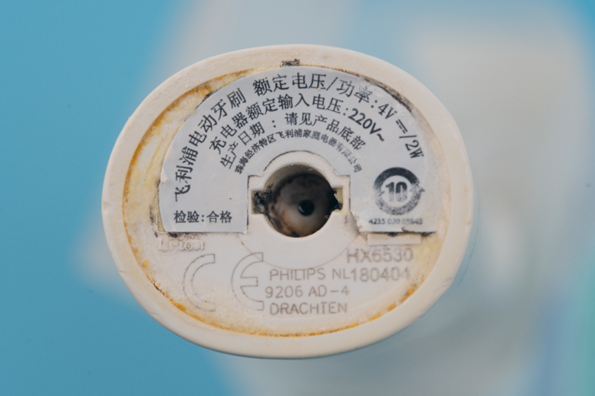 拆解之前,照例还是要看看它的型号,飞利浦HX6530。底部的充电槽看起来里面也频频发霉,令人作yue!