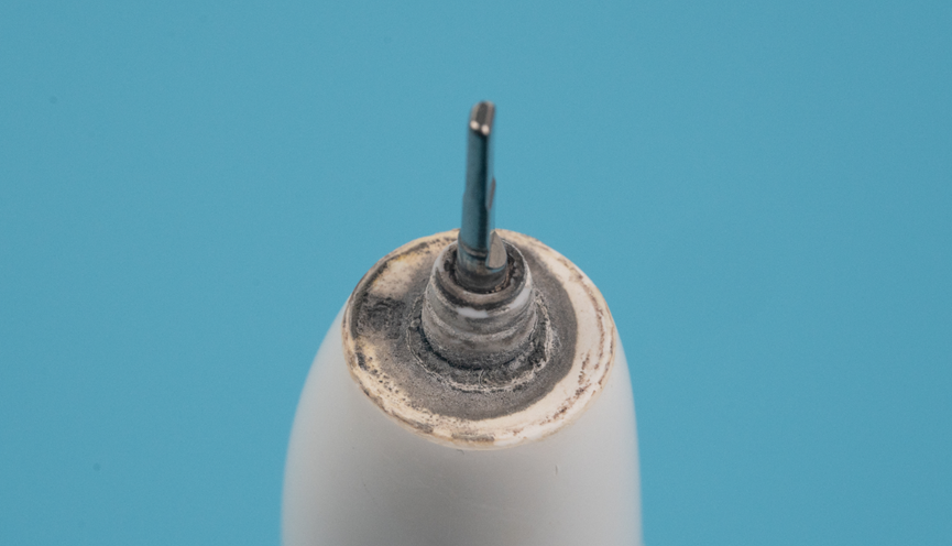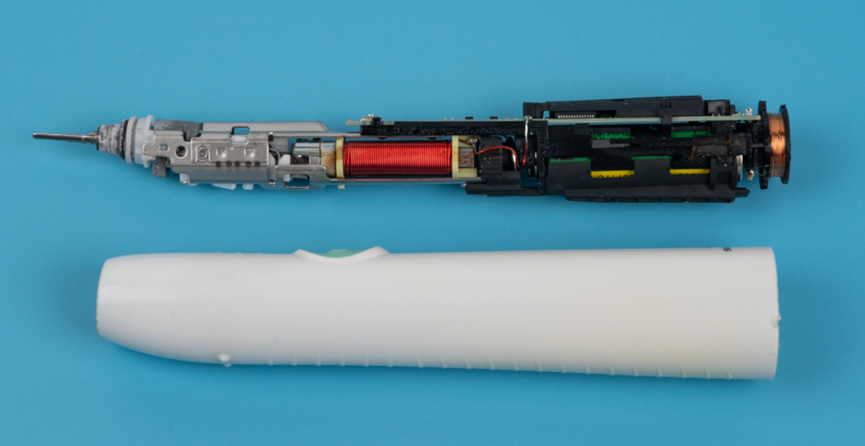 电动牙刷的震动头在壳外的部分,和内部结构一对比简直判若两刷,里面的是真干净!