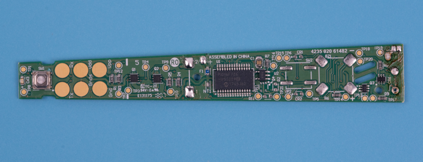 在组装回去让它发挥余热之前,还是先把拆解它的余热发挥一下吧,继续观察,电路板是真的干净,这个干净有两个意思,一个意思是上面不脏,另一个意思是上面器件不是很多,这是对比之前拆解的Oclean牙刷而言。