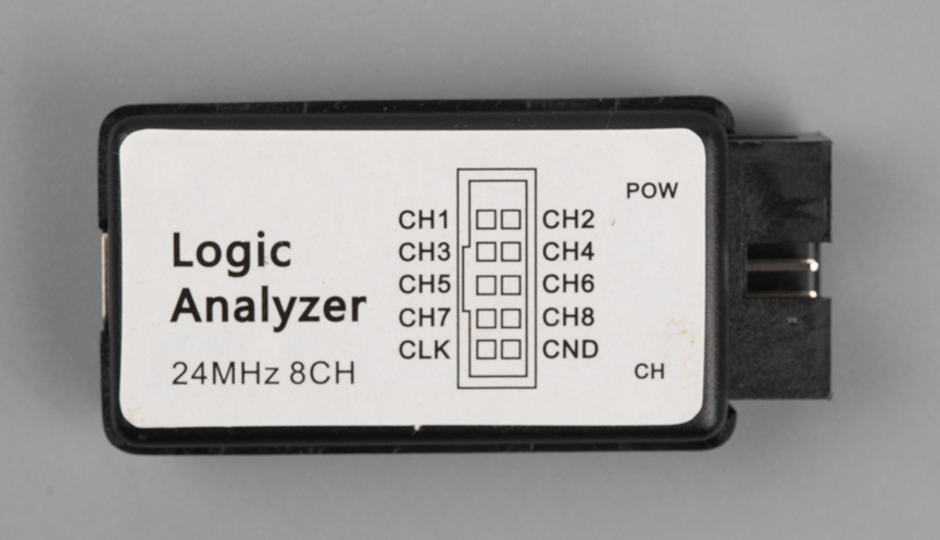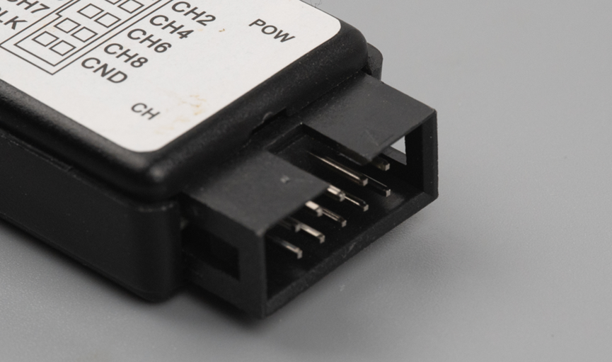 10根排针,总共有8通道,另外还有一个CLK和GND信号。写着24MHz,如果这个数据没有任何虚标,那也只能测一测UART和I2C之类的,对于速度较高的SPI都无能为力了。