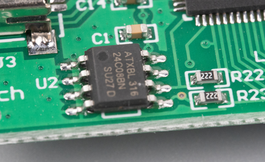 板子上有一个24C08,用来存储一些配置。I2C通信的上拉电阻2.2K。