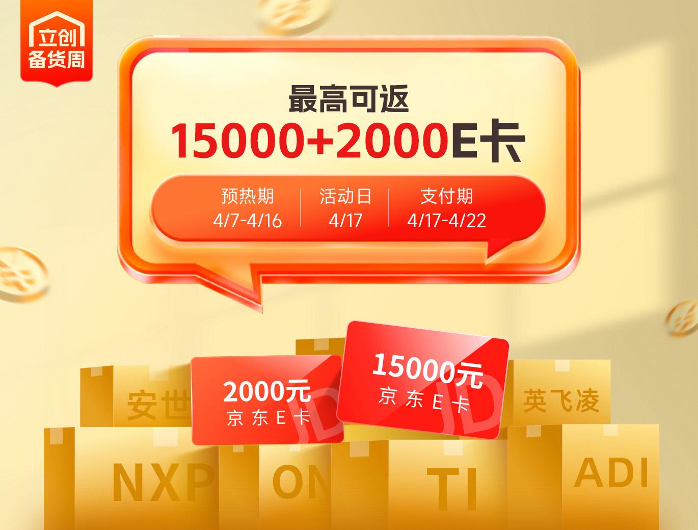 在电子行业,元器件采购成本与备货时机一直是大家关注的重点,现在备货不用愁!4月7日起立创备货周正式开启,下单最高可返15000E卡!