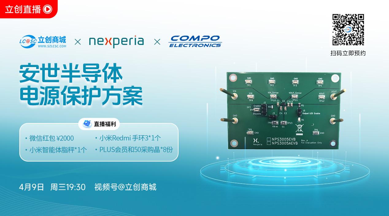 别担心,明晚4月9日19:30立创商城视频号将进行“安世半导体电源保护方案”主题直播,一次性扫清电源保护知识的所有盲区!作为全球领先的分立器件和功率器件厂商,安世半导体拥有完善的产品线,其创新电源保护方案能有效解决电源在不同应用场景的痛点,保障设备的稳定运行!观看直播不仅能收获满满干货,还有机会把好礼带回家!