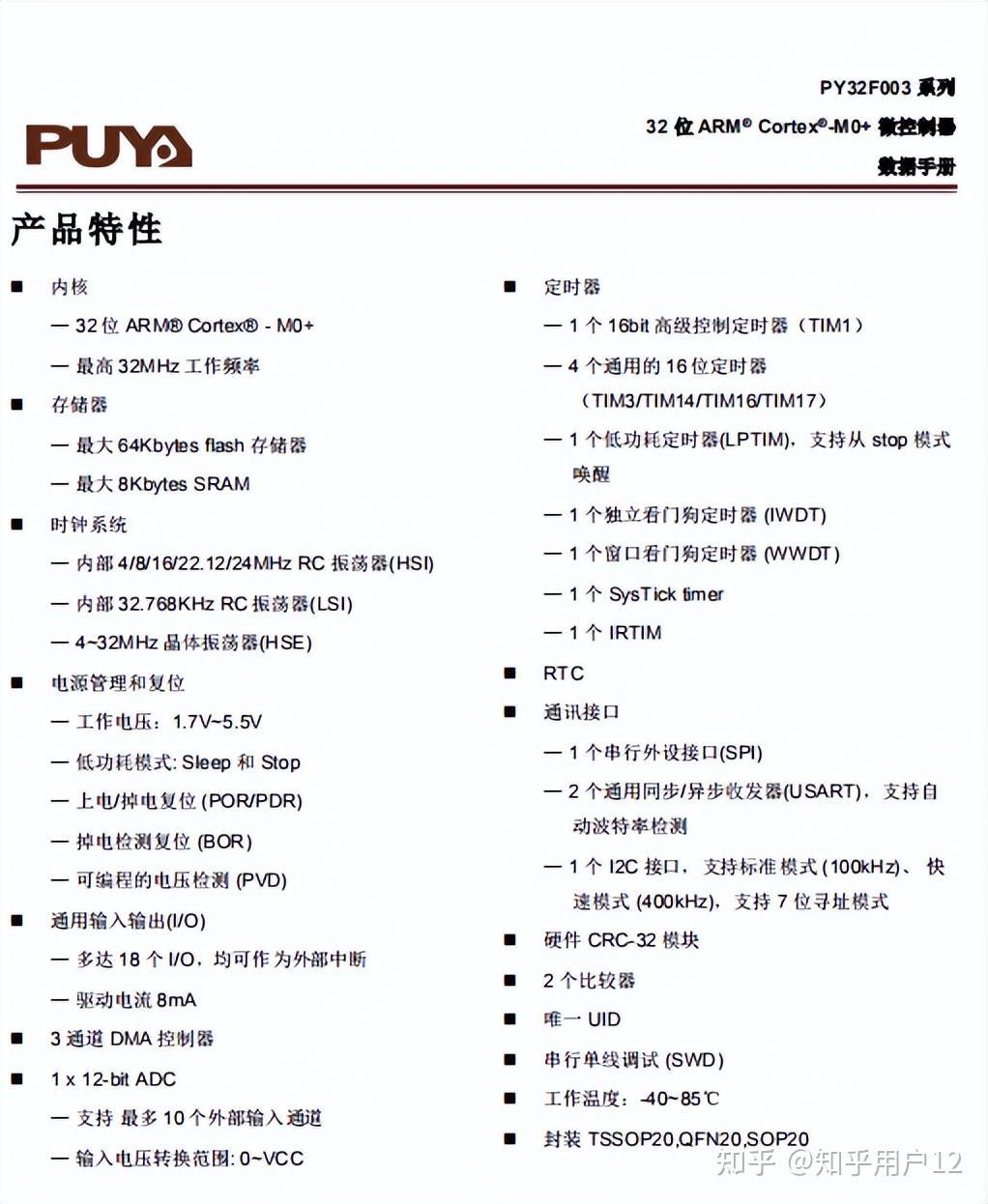 1.架构方面,PY32F003采用Cortex M0+核心,支持硬件乘法,支持中断向量重定向。