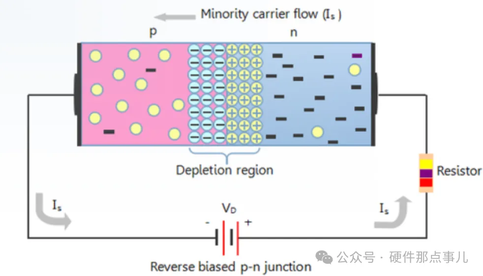 先聊聊二极管反向饱和电流这个概念,当我们在二极管的PN结加上反向电压时,那么二极管内部的少数载流子的漂移运动形成反向电流。但是呢,少数载流子从它的名字就能看出来这玩意数量特别少,并且呢在一定温度下它的数量基本维持不变,因此,当反向电压在一定范围内增大时,反向电流的大小基本恒定,而与反向电压大小无关,故称为反向饱和电流。