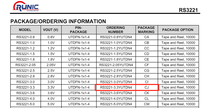 右上角还有一个小小的器件,封装是1mmx1mm,四脚,所以应该是DFN-4的LDO。根据丝印CJ找到可能是润石的RS3221-3.3YUTDN4。