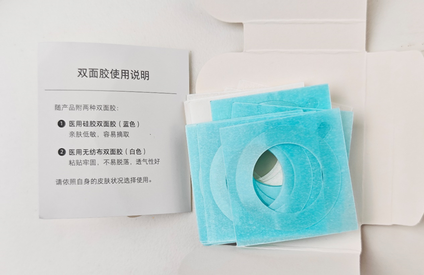 拆开纸盒看看,发现是一些双面胶。有两种,一种是硅胶双面胶,一种是无纺布双面胶。