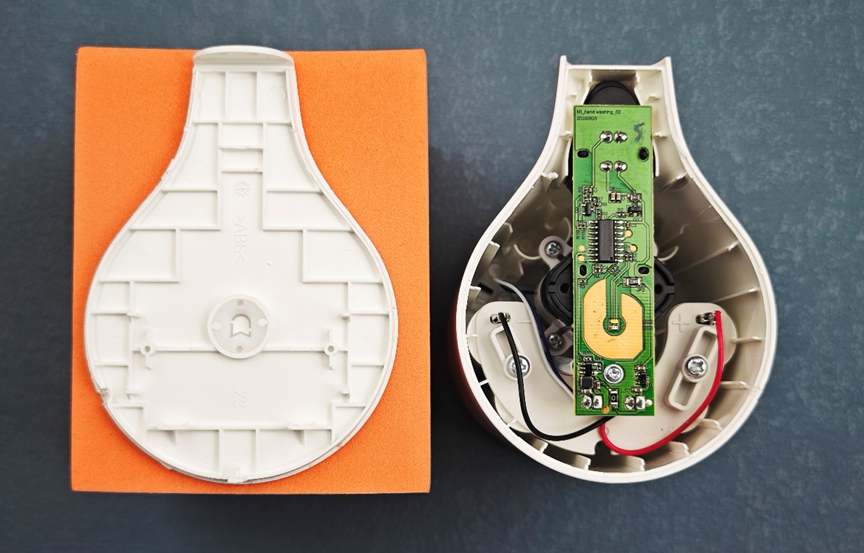 和洗手液接驳的位置可以拆开安装电池,用的是四节5号干电池。