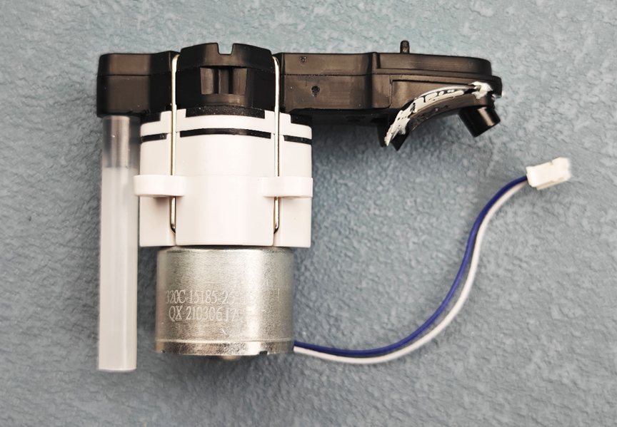 现在大概明白了,只要电机转动起来,洗手液就可以被吹成泡泡。那么还有一个问题,洗手液怎么被泵上来?