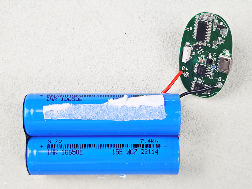 电池型号是INR18650E,不太确定这是哪家的电芯。容量7.4Wh,换算一下就是2000mAh。两个采用并联的方式,总容量4000mAh。