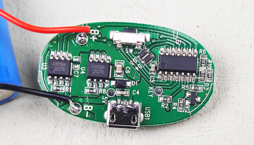 板子上两个G4056A,这个芯片是锂电池充电芯片。用万用表测了一下走线这两个充电芯片的输出是并联的,难道是为了提高充电速度?