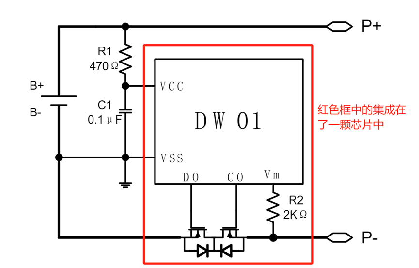 果然,这个和锂电池保护芯片DW01的应用电路完全一样,只是两颗NMOS被集成在了这个芯片里面。有大佬知道这个锂电池保护IC的型号的话,可以在留言区告知,感谢。