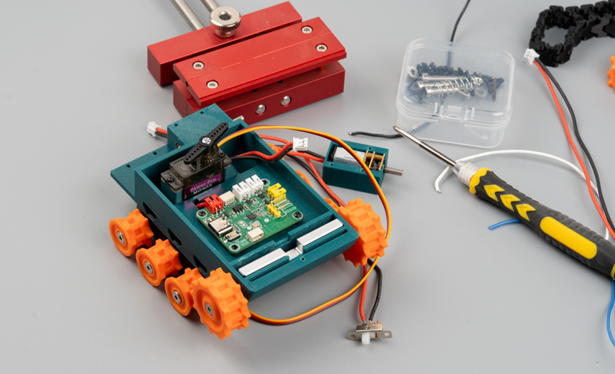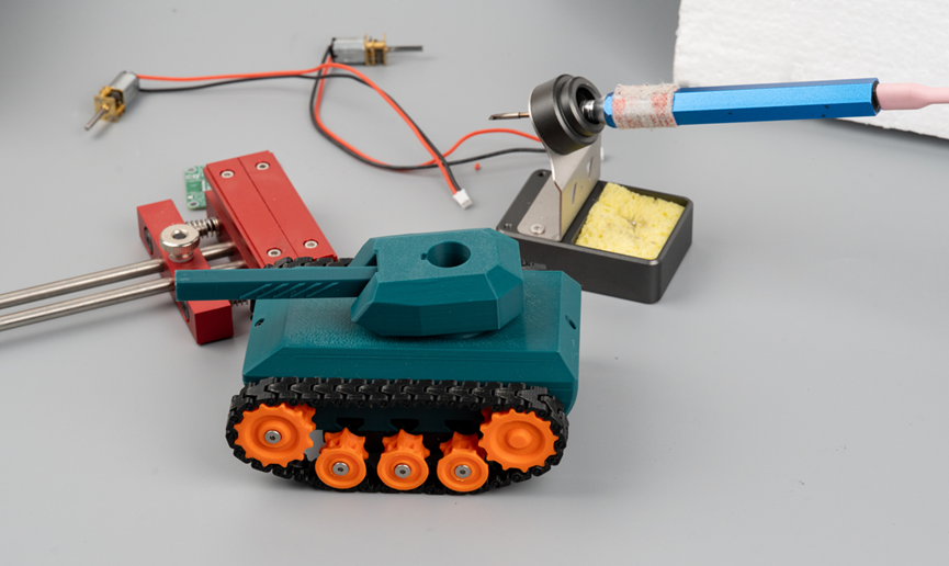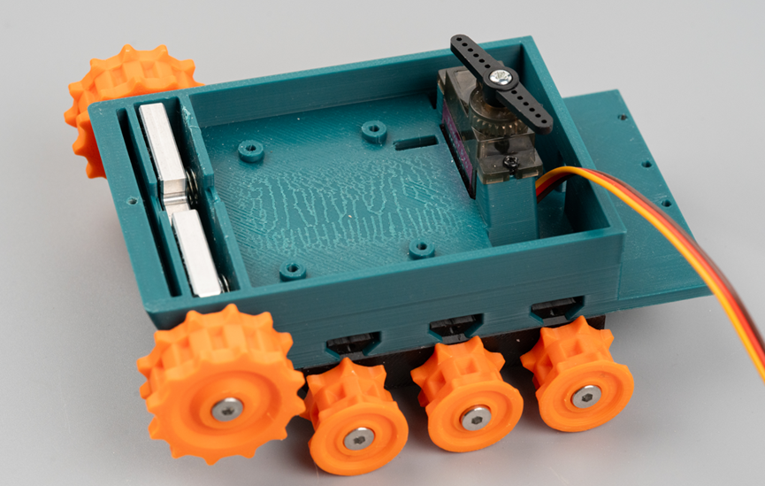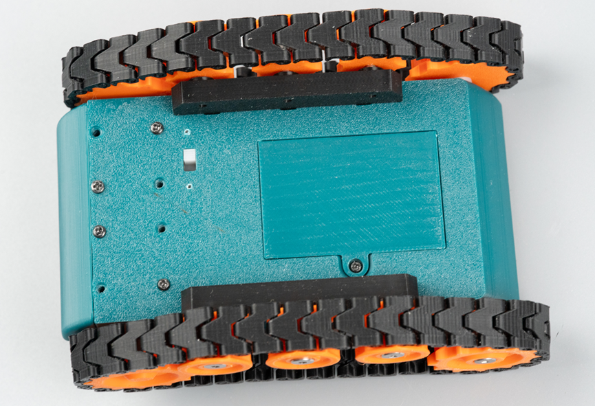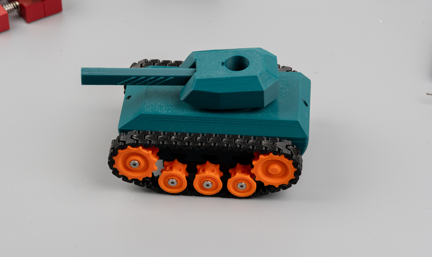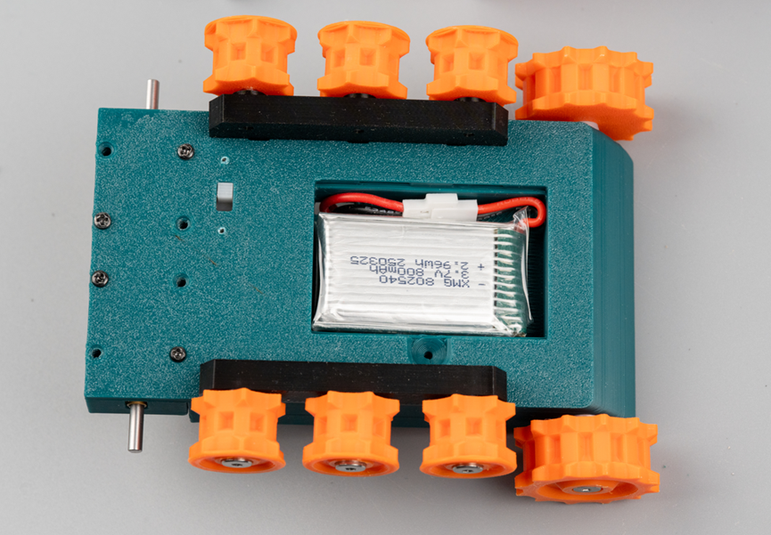 盖上3D打印好的电池舱盖,把3D打印的履带也装上去。