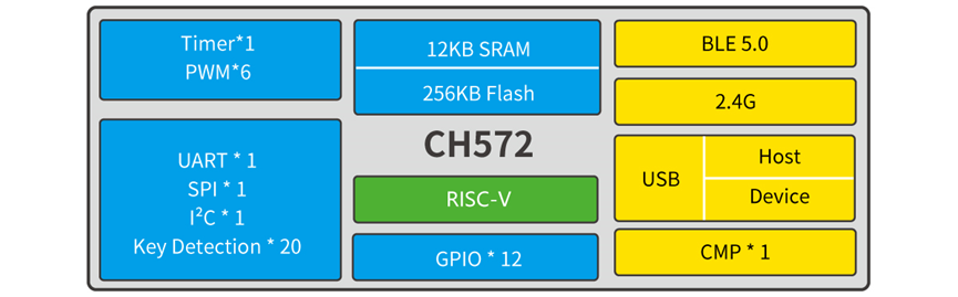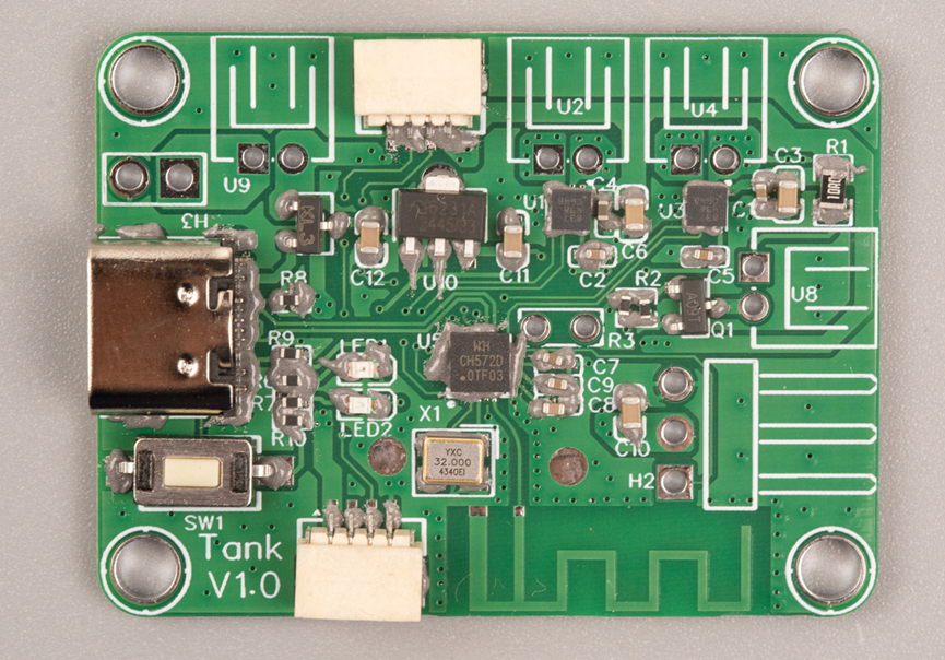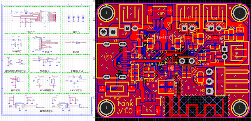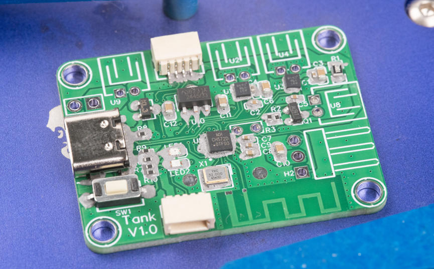 坦克的控制电路部分,经过一番考虑,选择使用沁恒的CH572D芯片作为主控,选择它的主要原因就是便宜,一个带蓝牙、2.4G通信的32bit RISC-V芯片,价格不到一块钱。最关键的是,它的蓝牙通信可以达到200米,用来做这个坦克的控制器,简直太香了。