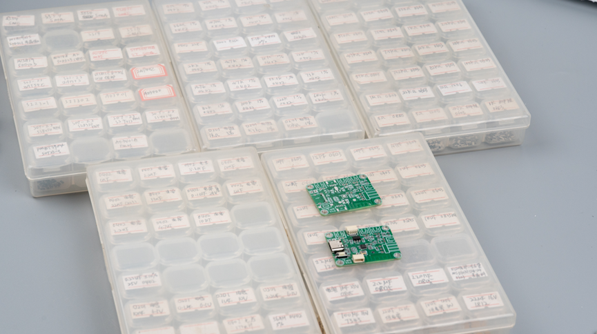 点好锡膏之后,开始人肉贴片。这个过程中,最费时间的其实不是摆器件,而是找器件的过程。