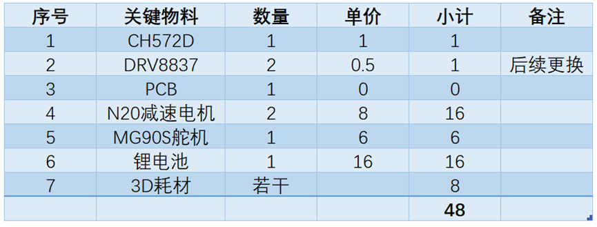 大概统计了一下,不算阻容、其他耗材、快递费、人工成本等,只需要48元就可以搞定这个坦克了,性价比还是可以的。