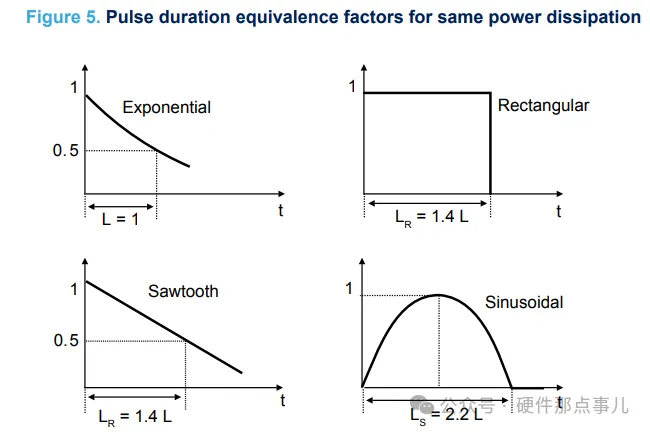 100*2.2=220ms,转换后的半正弦波脉冲为:29.5A 220ms。下图是不同波形之间持续时间的转换关系: