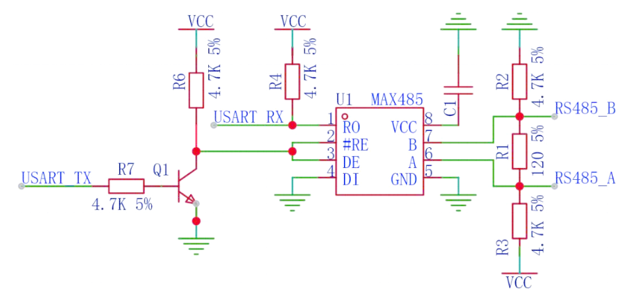 2、使用485自动换向电路,不过这种电路支持的波特率不会太高,一般在115200bps以内比较靠谱,也能满足大部分485通讯的场合;