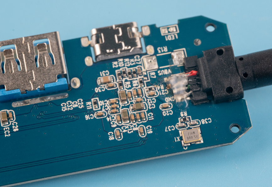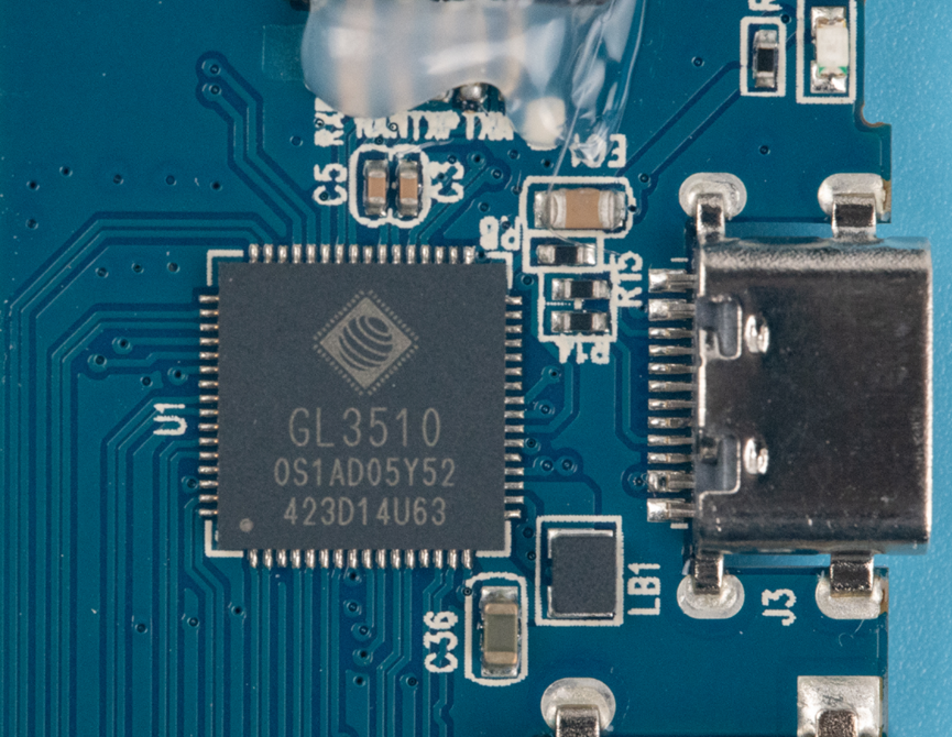 GL3510的电容布在芯片背面,使用了25MHz 3225封装的晶振。