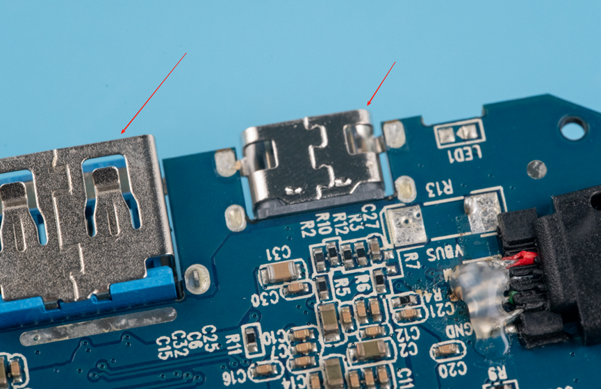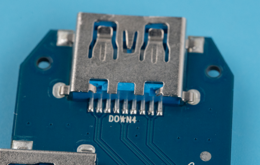 这样做的好处就是,整个电路板的厚度不再是连接器的厚度加PCB的厚度,而是最厚的地方也就是USB3.0连接器的厚度。