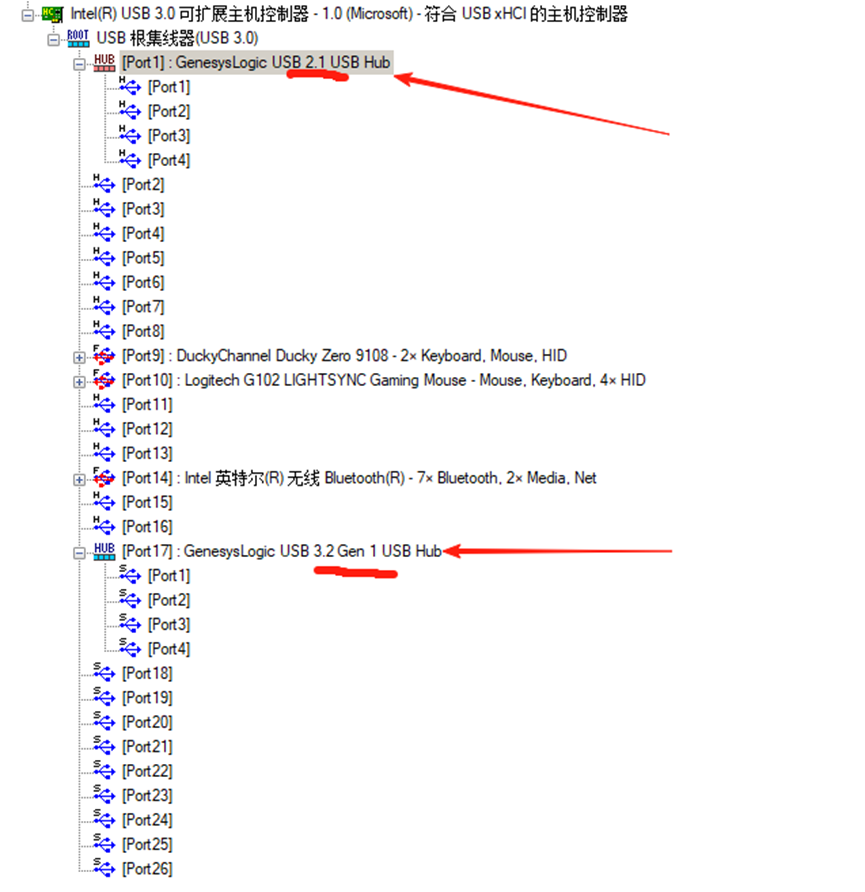 插上去之后,电脑上多出了四个USB2.1口和四个USB3.2Gen1口。这么看的话,应该是靠谱的。
