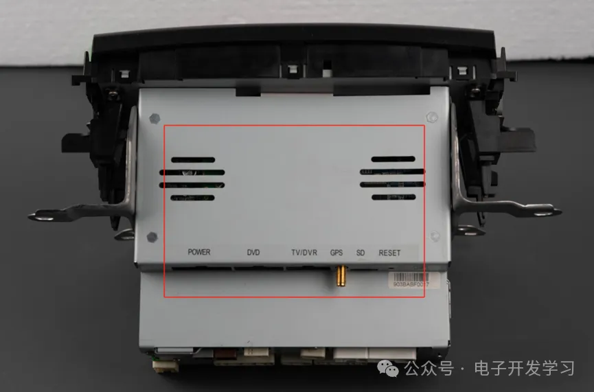 车主告诉我这个车机里当年加装过一个导航模组,加装成本不低。我看到最上面这个壳体引出了GPS天线,猜测这个就是加装上去的导航模组。那就先把这个拆开。