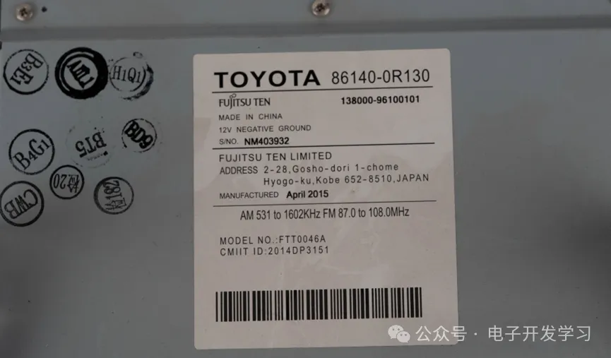制造日期是2015年4月,看起来是富士通给做的,支持AM\FM。