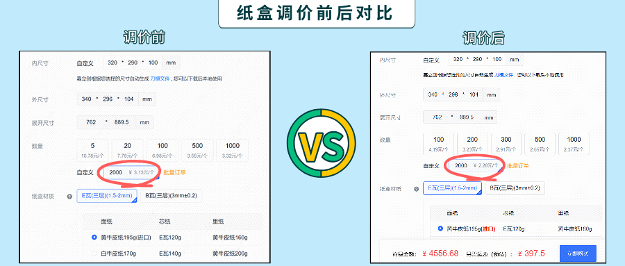 用户需求始终是企业发展的核心驱动力。嘉立创纸盒始终秉承集团“用户至上”的服务理念,近期我们对纸盒计价规则调整以及升级优化生产制作工艺,深入分析成本,正式跟大家宣布:嘉立创纸盒降价啦!