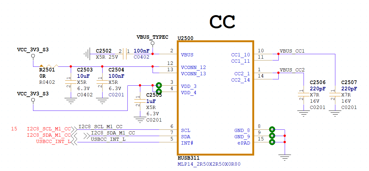 typec检测芯片U2500,用于区分插入的充电器类型,驱动通过I2C识别插入类型之后再去初始化充电芯片进行充电。