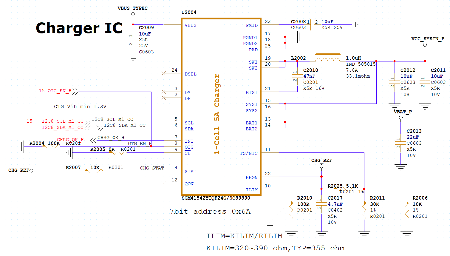充电芯片默认采用SGM41542YTQF24G