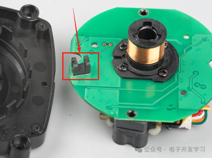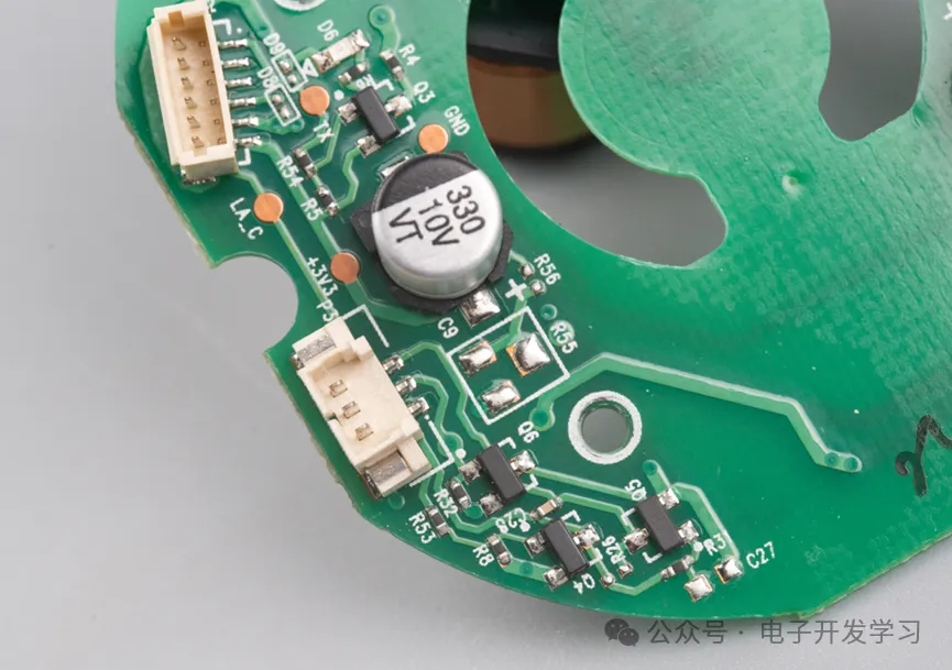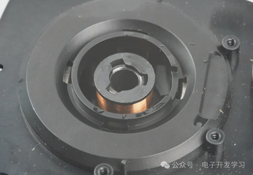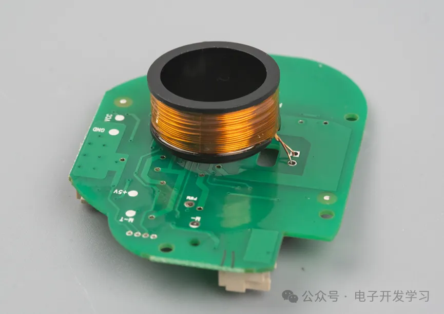 板子背面也是无线供电线圈。传统滑环方案容易磨损,而这种光通方案,避免了物理接触,理论上来说增长了使用寿命。