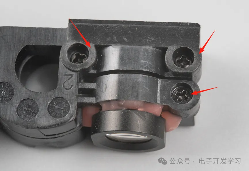 接收端很明显是一个镜头,还有三颗螺丝固定,我尝试把它拆下来看看。