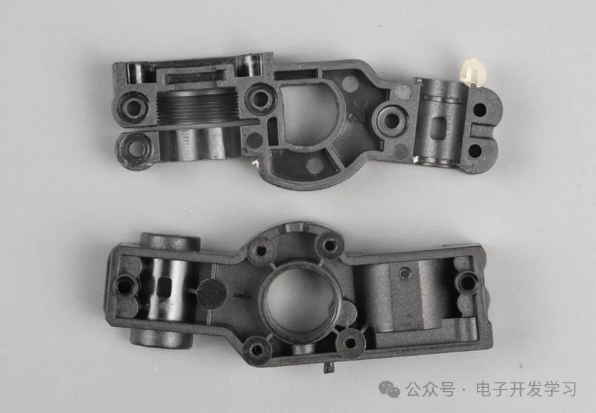 固定激光发射器和接收镜头的这两个件,看着特别像金属,但是我感觉它应该是塑料,查了一下,说这个是LDS塑料(激光直接成型,表面金属化)或者镁合金压铸(轻量化+EMI屏蔽)。简单测试了一下无磁性、掰断之后断面看着确实是塑料材质,但具体材料不明,还需要大佬们留言区赐教。