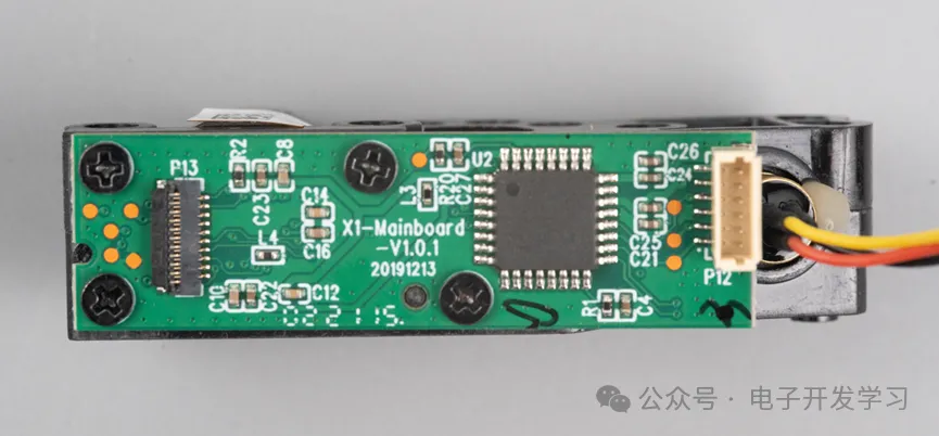 激光发射器直接连接到了底板上,激光接收板上有一个LQFP-32封装的芯片,板子一端通过连接器引到底板上。