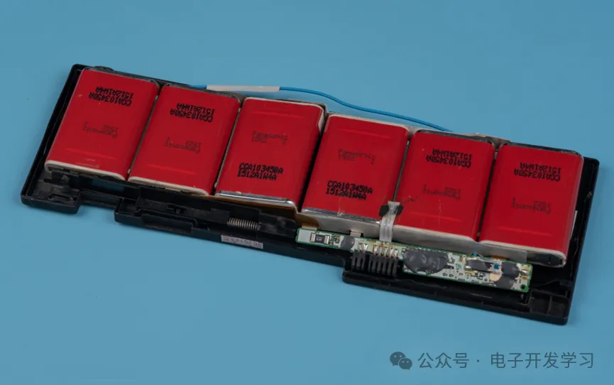 直接开盖,第一眼就看到一堆红色的电芯。