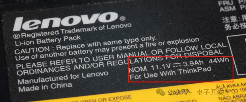 电压是11.1V,看来是三串。这个时候的ThinkPad已经被甩卖给联想了,所以上面没有IBM的Logo了,取而代之的是联想的标,但是好歹这个时间段的产品,属于过渡产品,性能和做工也还是不错的。