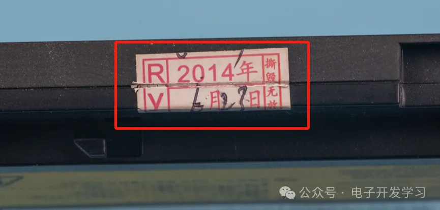 侧面有一个撕毁无效标,日期还是2014年的,这电脑是我2014年买的二手笔记本。