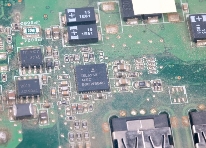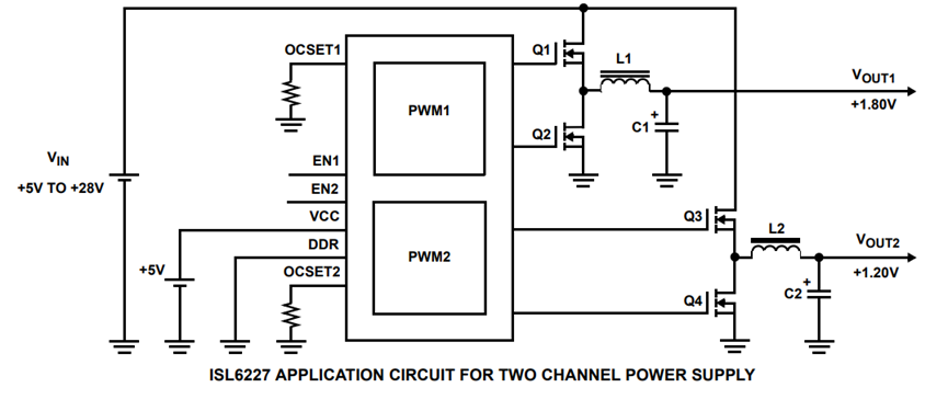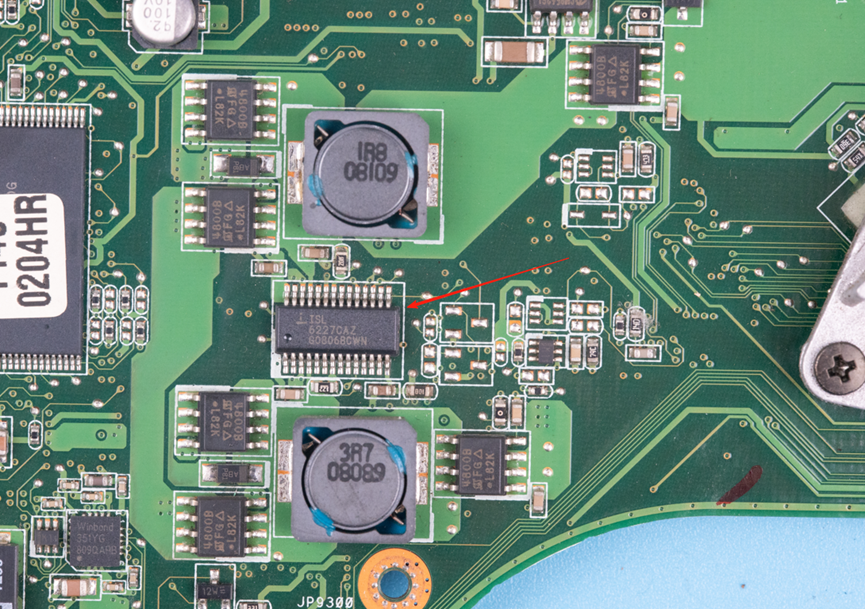 这里还有一个ISL6227,这个芯片是一个双PWM控制器,提供高效率的双同步降压BUCK,为DDR\芯片组、图形处理等其他系统供电。