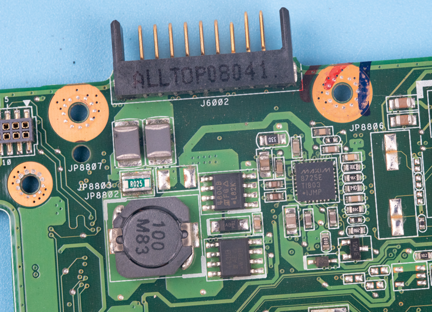 这是电池输入口的电路。笔记本电脑电源部分电路。要实现直流输入和锂电池供电互相切换。当没有插入电源时,电池供电,当插入电源时,电源供电且给锂电池充电。实际情况比这里描述的更复杂。而这个功能是由MAX8725E这个芯片实现的。