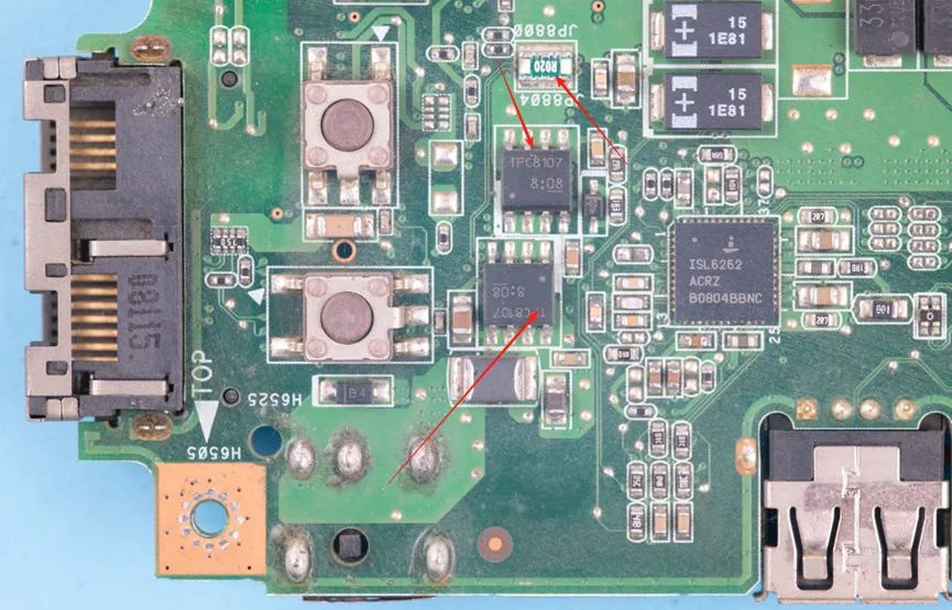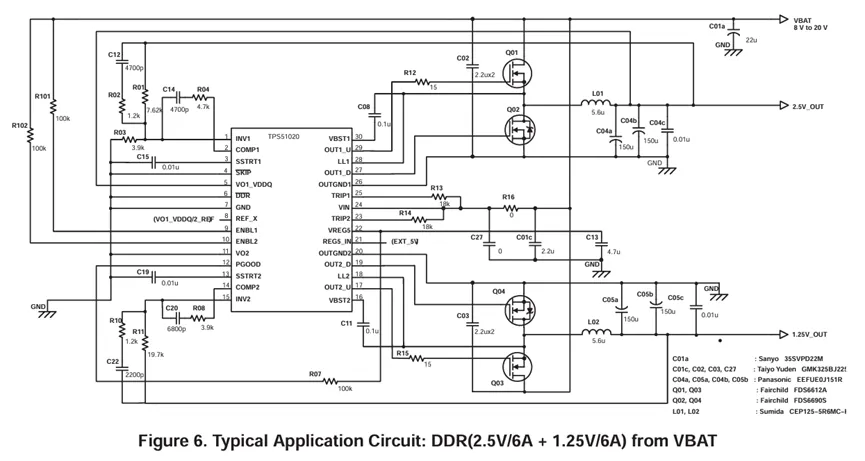 这边还有一个TPS51020,毫无疑问,这也是一个双通道DC-DC降压控制器。