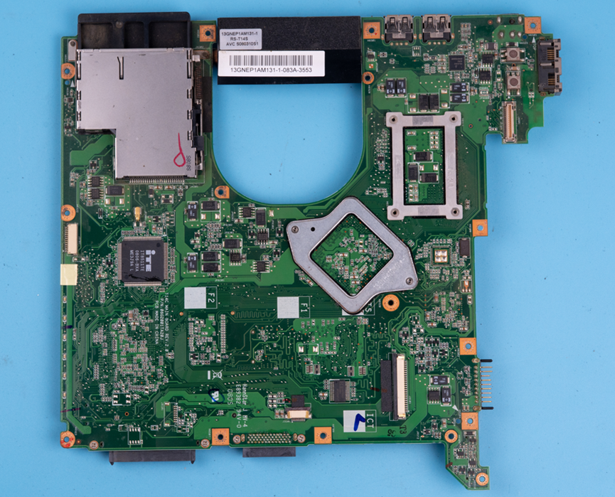 背面全景图。其实这种老的笔记本电脑,真想用,配置太低用不了,卖废旧,可能换个脸盆都吃力,但是反而用来拆解学习一些电源电路还是很不错的。