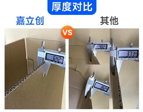 在卡尺统一归零的情况下,通过对纸箱厚度测量,嘉立创五层纸箱的厚度为6.42mm,其余三家纸箱厚度分别为3.82/3.71/4.02mm,由此对比嘉立创纸箱厚度完胜,可以提供更好的缓冲和抗形变能力。