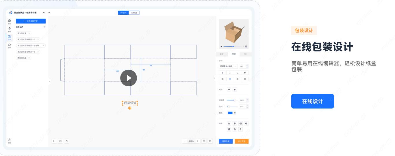 2、自研的在线设计神器操作简便,“一分钟拖拉拽”即可实现个性化定制;千款纸箱盒型结构图,方便用户随时免费下载使用。即使不具备专业设计技能,也能轻松设计属于自己的纸箱,完全不成问题。
