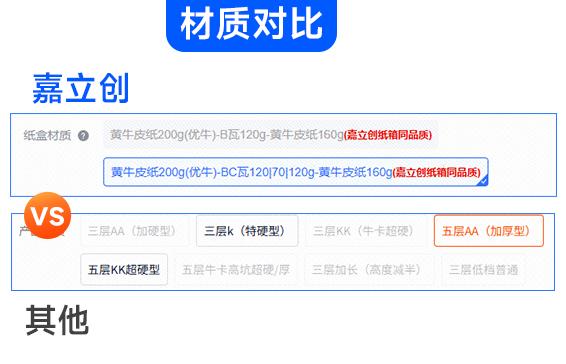 嘉立创纸盒材质公开透明,反观某宝上或是客户自行采购的纸箱,材质信息模糊不清,客户难以直观了解到面纸或坑纸的具体用料情况。