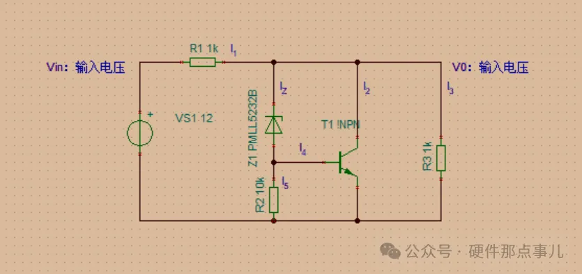 基于以上问题,出现了稳压管+三极管扩流的方案,通过加入三极管作为反馈元件,可以提高稳压管的性能。三极管的引入使得稳压管具有了增益功能,可以放大输入电压变化,从而实现更好的稳压效果。最为关键的是,三极管还可以提供更大的输出电流能力,解决了稳压管在大电流负载时的选型问题,但是这种方案也存在相关的问题,那就是效率低的问题,接下来就稳压管+三极管扩流方案的选型以及缺点进行分析。
